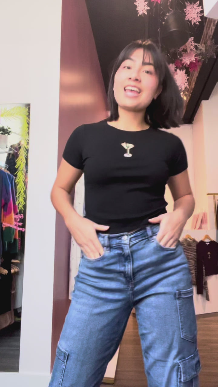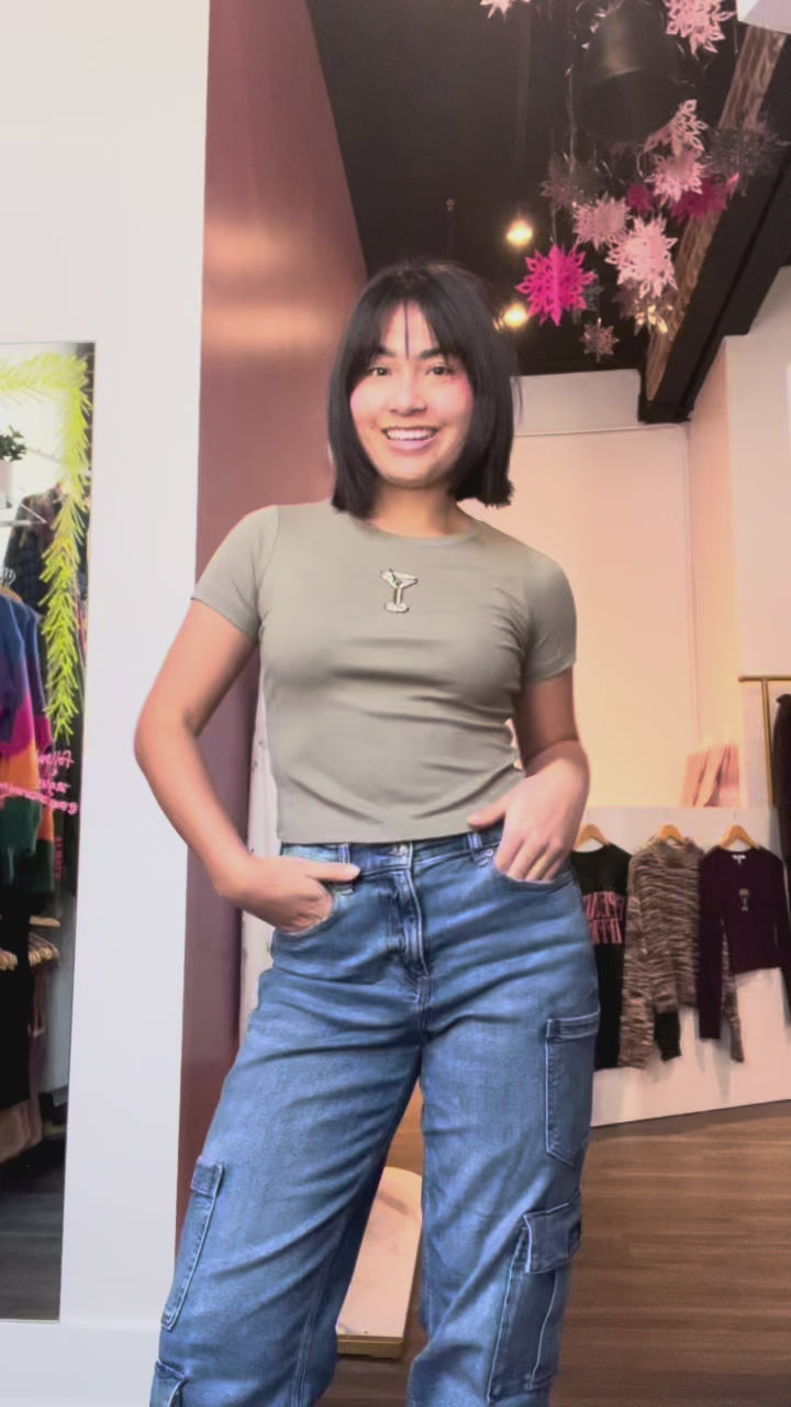 Add a touch of fun and flair to your casual lineup with the Gemma Martini Bead Tee! This playful tee is adorned with sparkling martini bead embroidery, serving up a quirky statement twist for any outfit. Crafted from a soft and stretchy blend, it's designed for all-day comfort and effortless style-perfect for everything from brunch dates to girls' nights out. Martini bead embroidery for a unique, eye-catching accent. Short sleeve design for easy, breezy wear. Soft, stretchy fabric blend for maximum comfort and a flattering fit