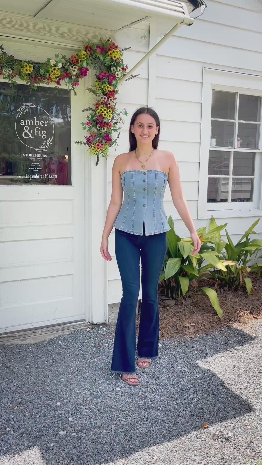 Elevate your style with our Indigo Washed Denim Top! Featuring a strapless design and front button down, this top effortlessly combines comfort and fashion. Perfect for any occasion, this top will add a touch of chic to your wardrobe.