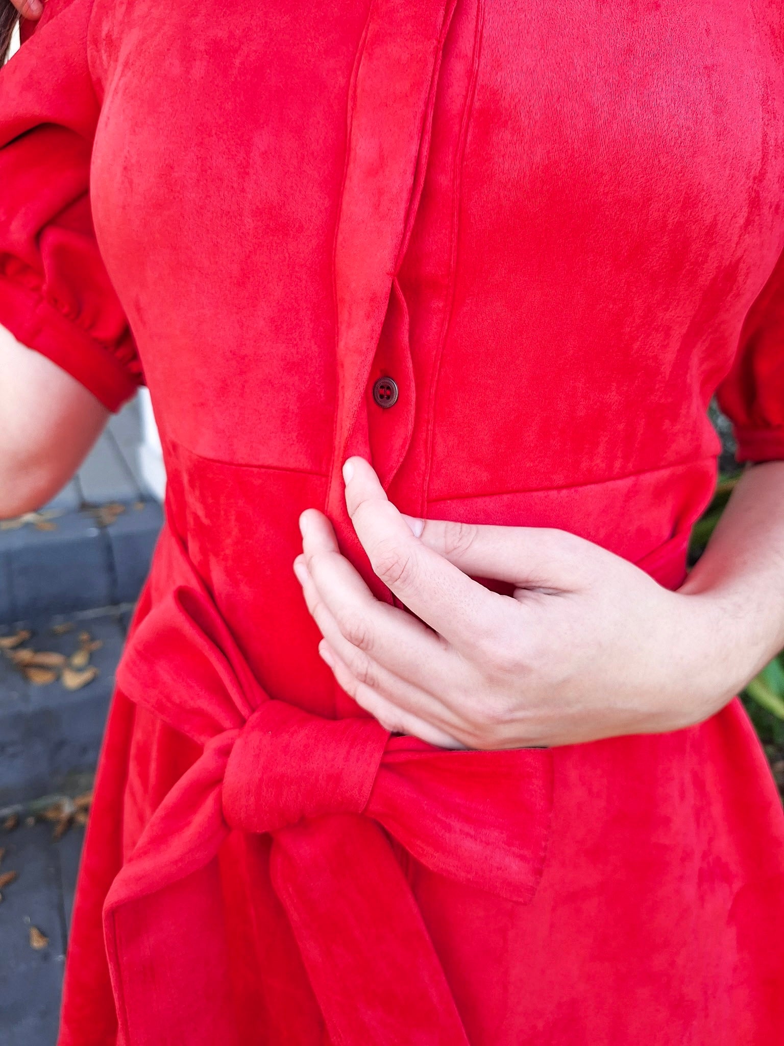 Be bold and beautiful in our Aegean Flame Shirt Dress! Stand out in the bright red color and elegant puff sleeves. The button down design and bow tie add an extra element of sophistication. Make a statement and turn heads in this must-have dress.
