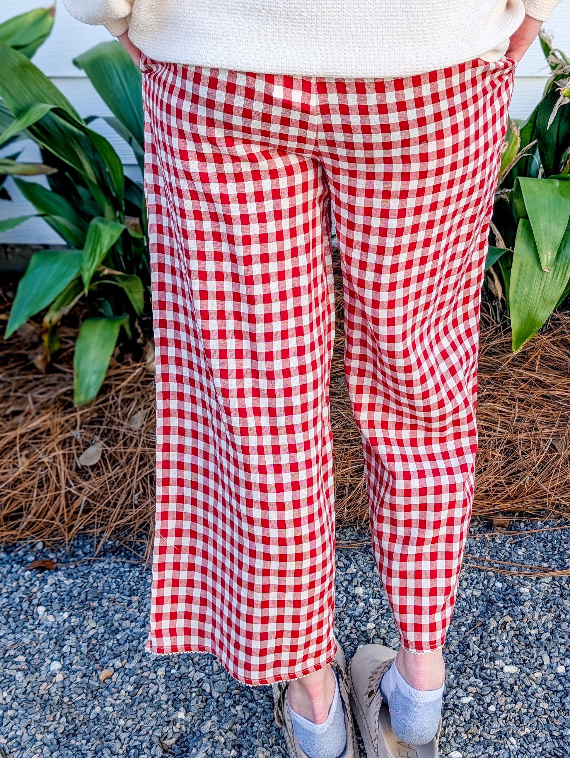 Elevate your style with our Apple Butter Pants in a charming red checkered design. The tie front adds a touch of cuteness while providing unbeatable comfort. Pair them with anything to effortlessly complete any look. Upgrade your wardrobe today!