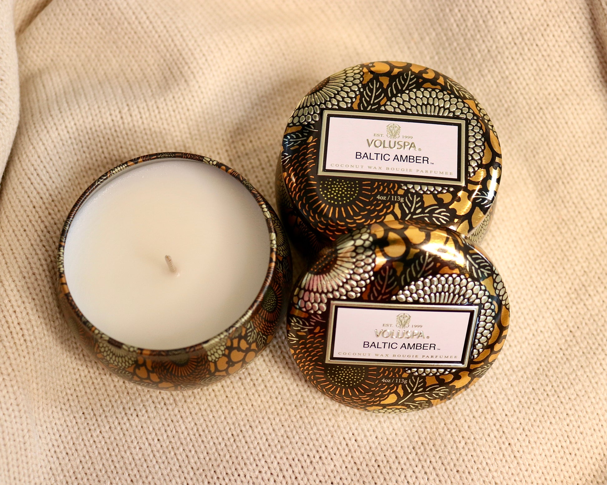 Experience the warm and soothing aroma of our Baltic Amber Mini Tin. This fragrance boasts notes of amber resin, sandalwood, cedar, and vanilla orchid, creating a truly inviting ambiance. With its rich and complex scent, this candle will bring comfort and relaxation to any space.