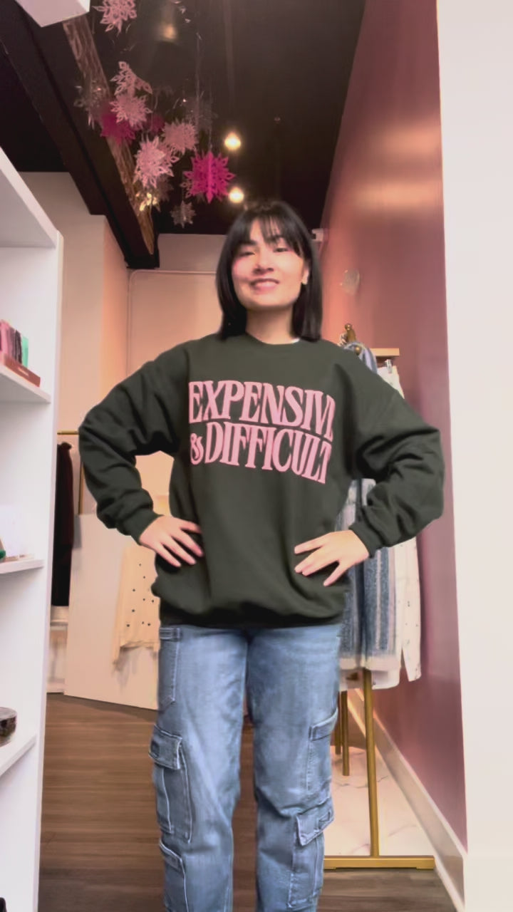 Turn heads with the Expensive & Difficult Puff Sweatshirt—a playful mix of comfort and bold personality. Crafted from soft, midweight fabric, this sweatshirt offers the perfect balance between cozy warmth and breathable wear. The oversized puff-print lettering in eye-catching colors delivers a confident, statement-making look that stands out anywhere. Designed with a relaxed fit and durable construction, it’s ideal for layering or wearing solo with jeans, joggers, or sneakers. Available in multiple color options, this sweatshirt is a must-have for anyone who loves fashion with a touch of humor and attitude.