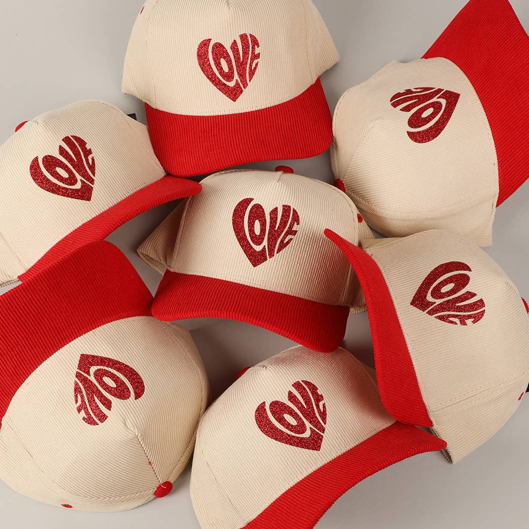 Heart Love Glitter Logo Two-Tone Corduroy Cap