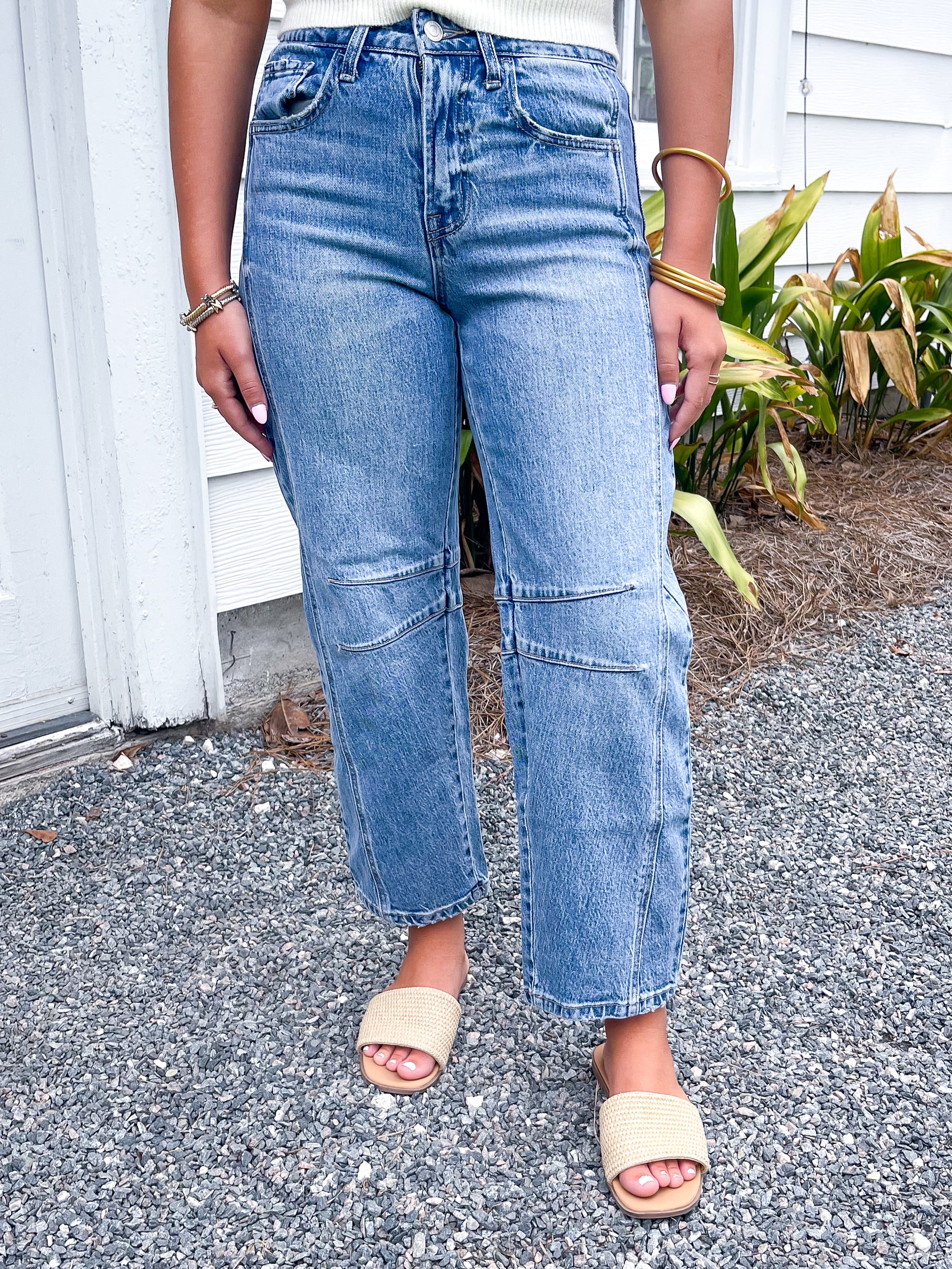 Elevate your denim game with our High Rise Barrel Jeans. These stylish cropped jeans feature a flattering high rise and a wide leg design that adds a touch of sophistication to any outfit. The medium wash gives them a versatile look that can easily transition from day to night.