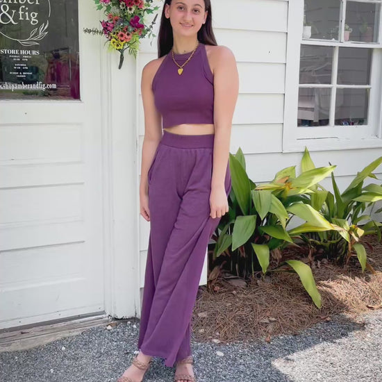 Feel stylish and comfortable in these Mineral Wash Flared Sweat Pants. The wide leg and ribbed material inset on the sides adds a unique flair to your everyday look. Featuring an elastic waistband and pockets, these pants are bound to become your favorite new set. Wear with the matching Mineral Wash Halter Tank, elevate your look today!