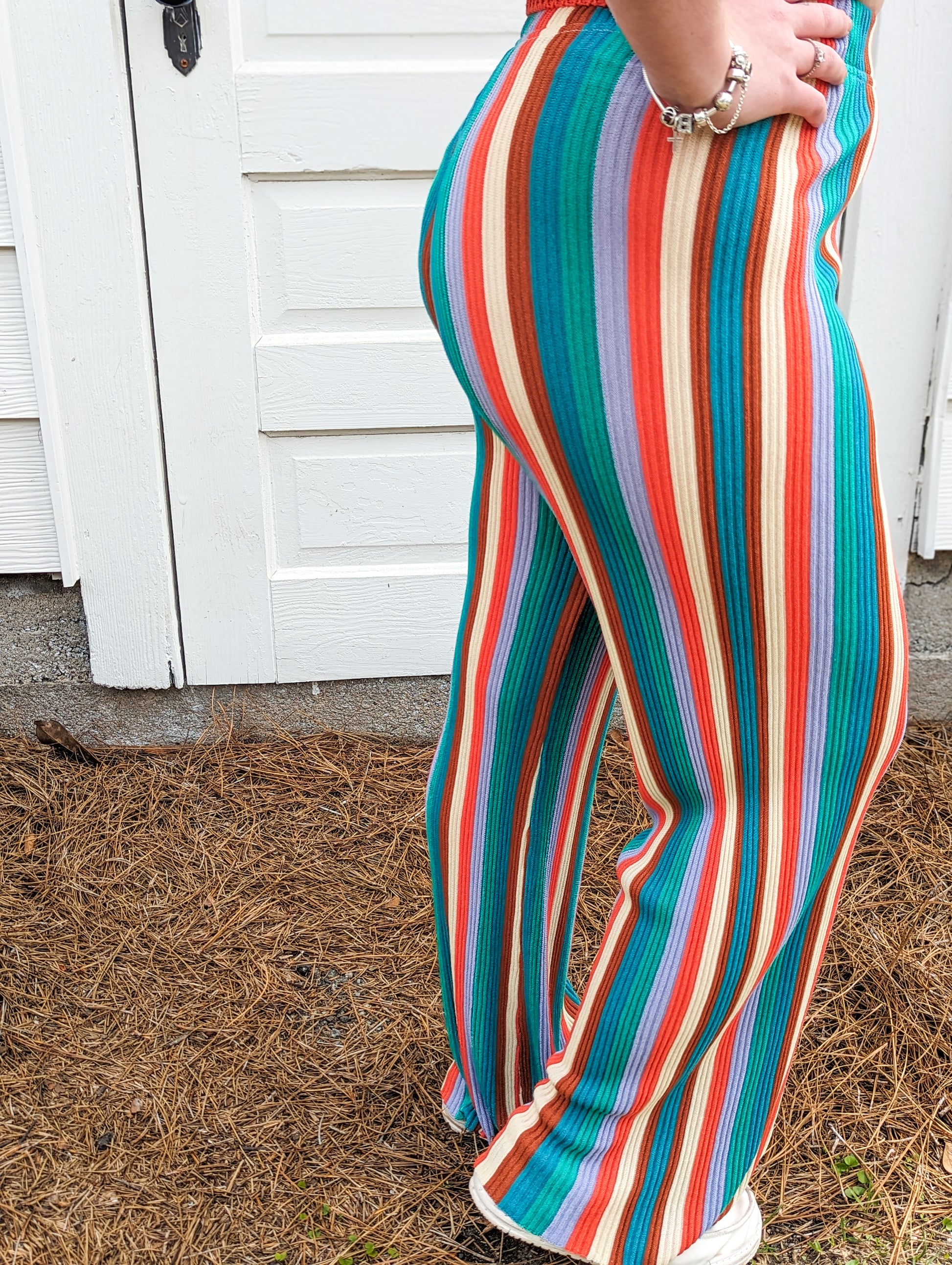 *FINAL SALE*Multicolor Vertical Strip Flare Knit Pants