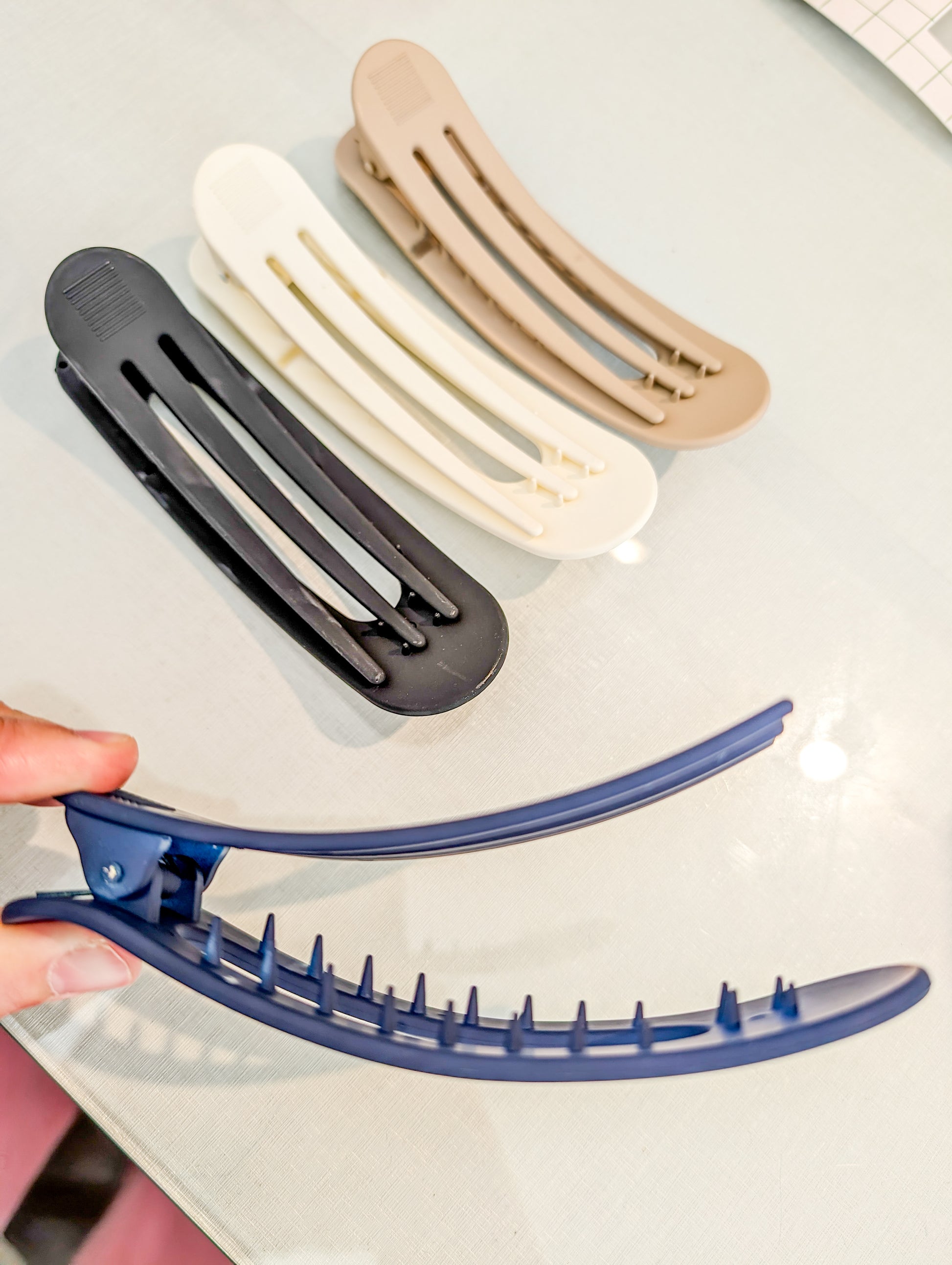 The Oversized Lay Down Claw Clip allows for comfortable head positioning while exercising, sunbathing, or traveling. With its lay down clip design, it offers convenience and functionality. Choose from 4 neutral colors to add some style to your daily routine. Stay productive and comfortable with this versatile accessory.