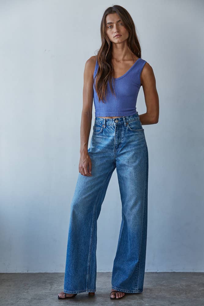 Seamless Sleeveless UV Neck Reversible Tank Top