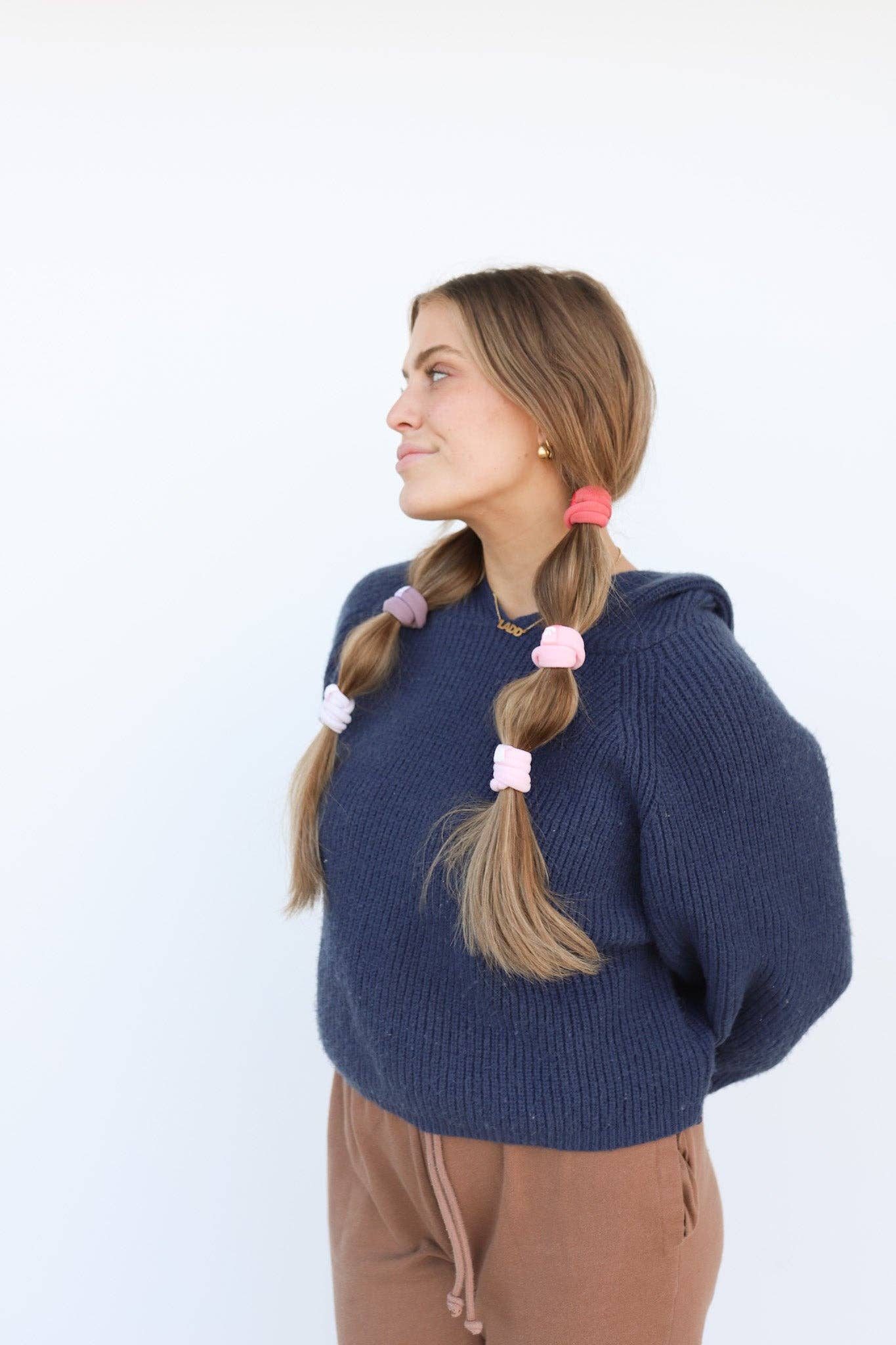 Made from long-lasting, durable nylon material, the SOLID KAXI HIGH INTENSI'TIES' pack of 3 hair ties provides functionality and style and ensures that your hair stays secure during high intensity workouts without causing damage or pain. Say goodbye to breakage and discomfort with this elastic-free design, suitable for all hair types. Whether for pool days, intense workouts, or everyday use, these hair ties are the perfect choice for any occasion.