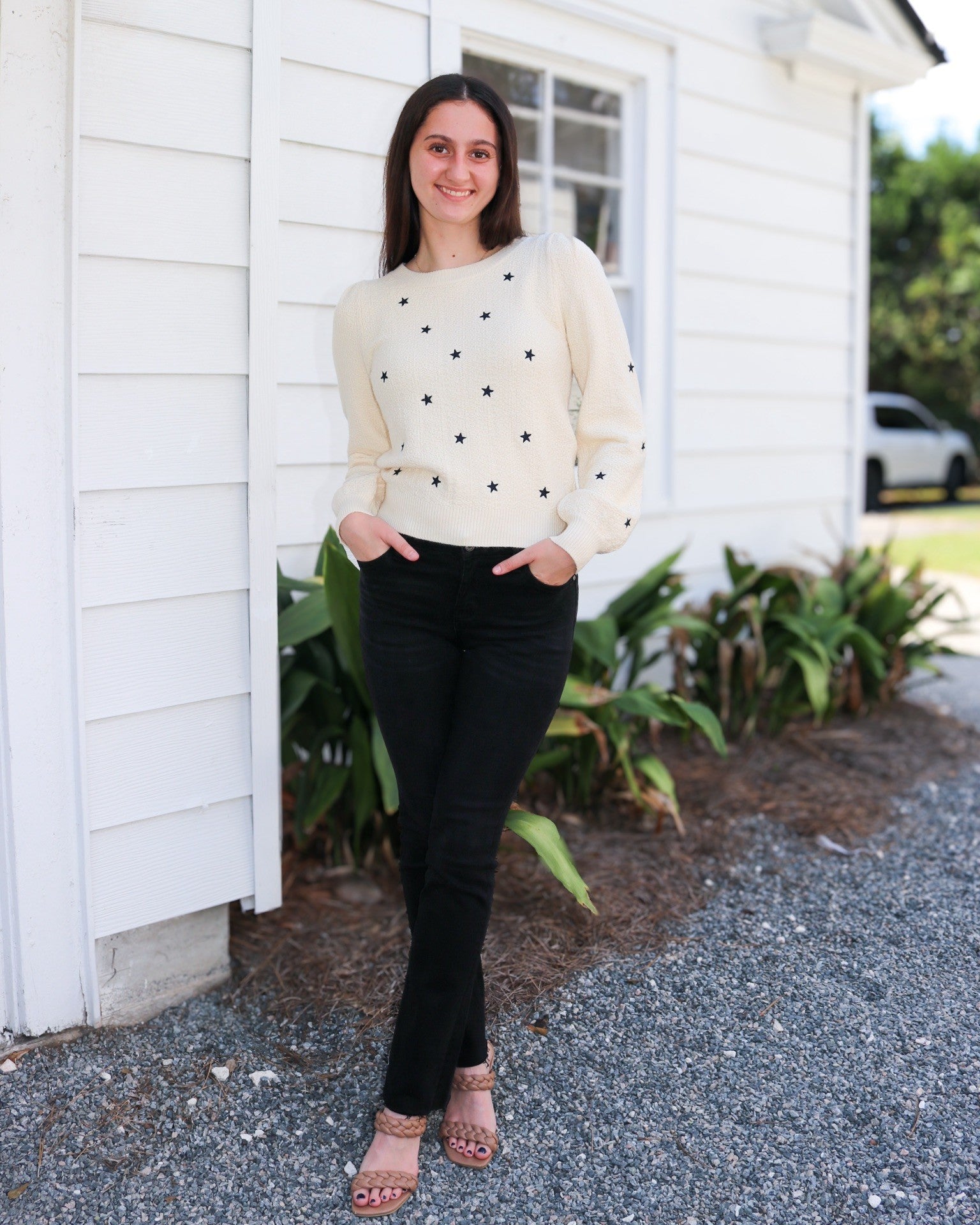 Indulge in cozy fall vibes with our Twinkle Star Embroidered Sweater! This cream-colored sweater features little stars embroidered for a touch of whimsy and warmth. Perfect for chilly autumn days, this sweater will keep you stylish and snug. Don't miss out on this must-have addition to your wardrobe.
